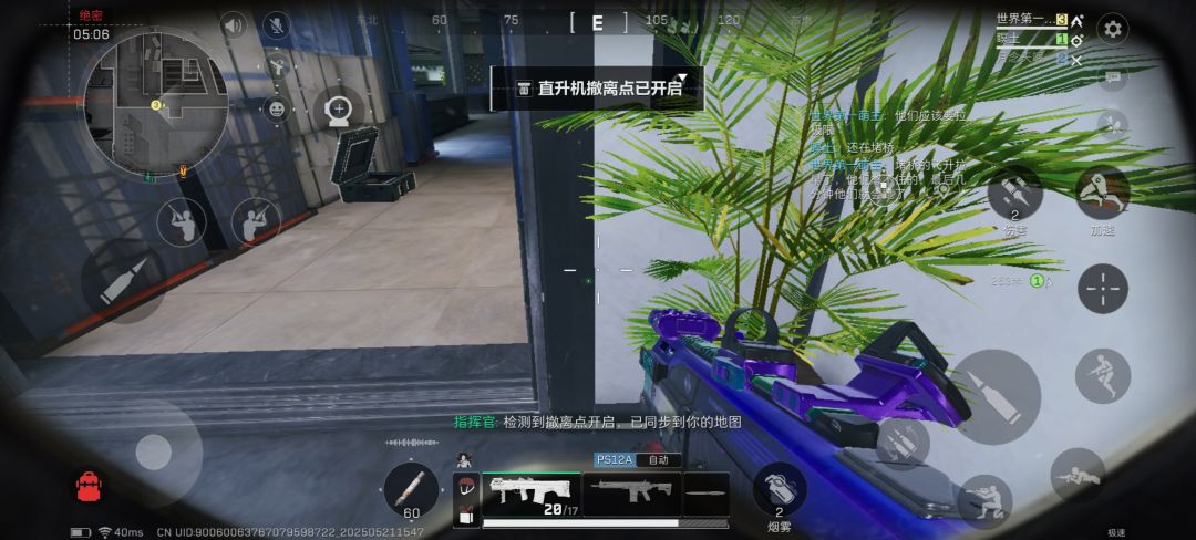 到这里已经不抱有撤离的希望了,但是13分钟桥上就接了飞升,说明他们要么堵不完全程要么只走极限,终于蓝室队憋不住拉了极限闸,我们绕去离心走蜀道,队友是骇爪静步去丢包,我等着封烟混闸结果桥上不走飞升被一直抽,最后几十秒蓝室蹲闸队憋不住跑出来和桥上打起来了,我从另外一边封烟混闸跑路,艰难撤出