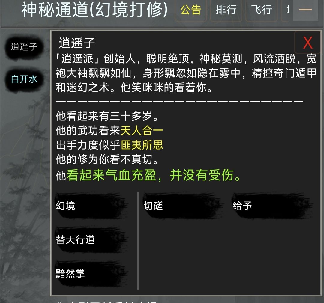 打谷场只能打到900年修为,900年后继续击杀大山鸡将无法在获得任何奖励,前往宗门师父处学习完技能就可以前往目前主流固定副本,主流在活动场西北方“神秘幻境”进入后见到NPC逍遥子