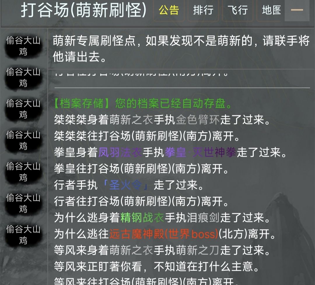 萌新就从蓝色框的打谷场开始,进入打谷场击杀偷谷大山鸡即可获得修为潜能。