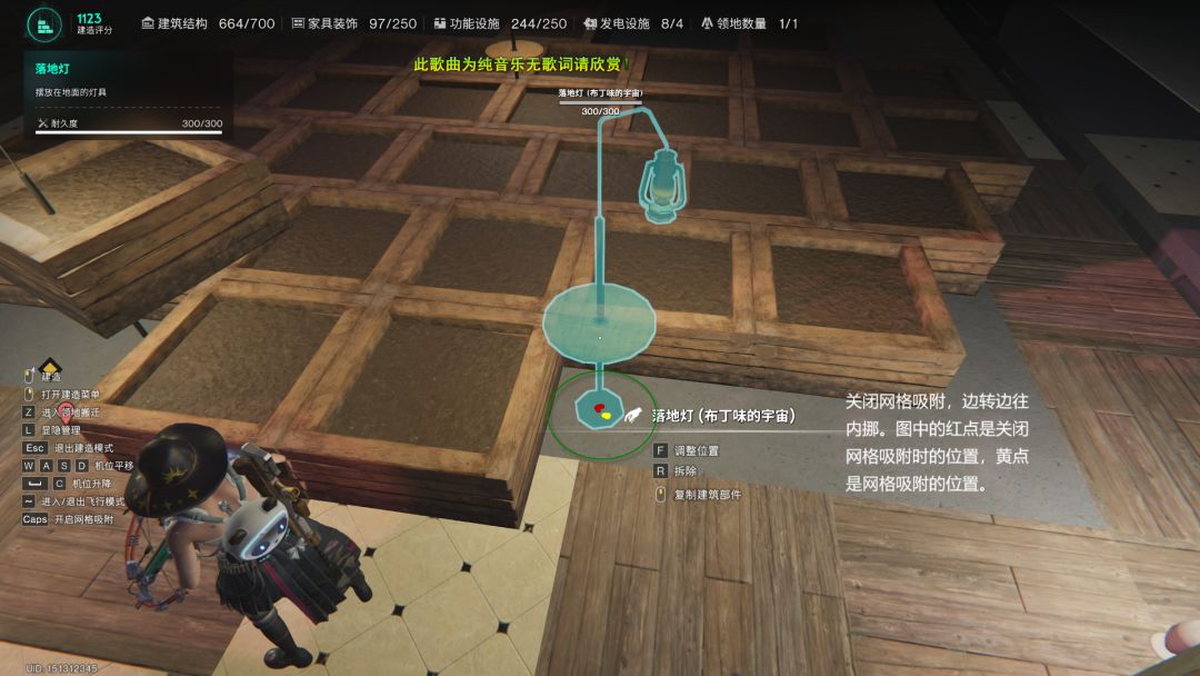 种植箱要摆放到落地灯的中心圆盘靠近中心落地灯方向的边界,不支持棱角(建议关闭网格吸附摆放)