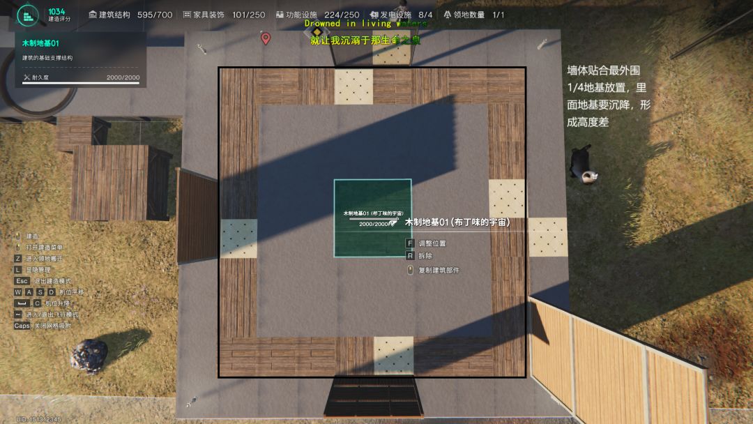 如图(放置墙体的1/4地基不要动)