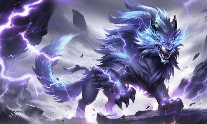 动物原型:以《山海经·西山经 》中“天狗”为蓝本,融合雷兽元素,通体银蓝毛发如闪电纹路,双目如紫晶,爪牙缠绕电弧,尾部分裂为三条可独立攻击的雷鞭