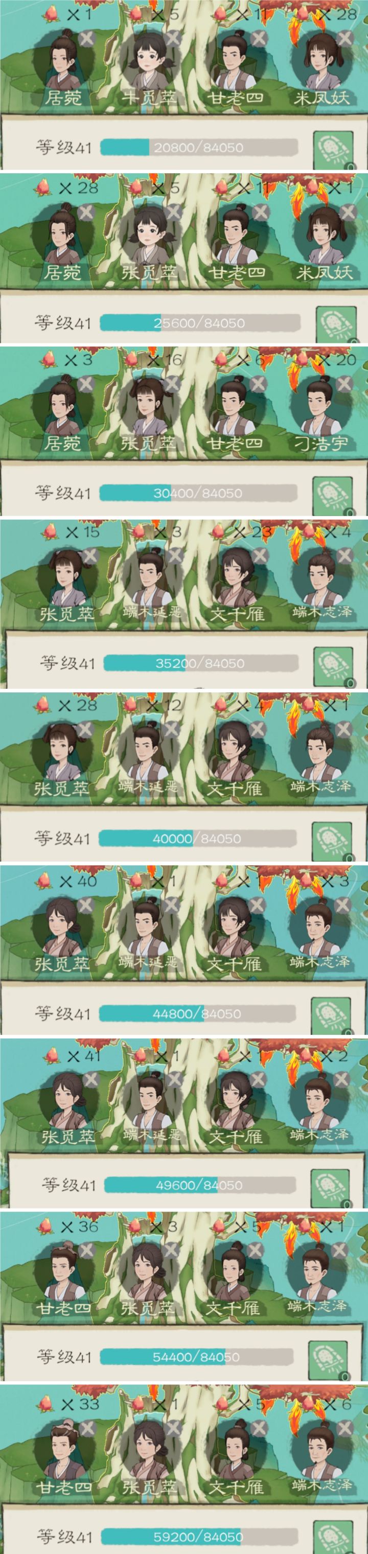 在组建稳定四人吃果子队后, 从左到后的寿命低或年轻的一号位能在第二次掉落中吃到果子最大掉落,同时在不更换四人人员编队下变动位置后,还是1号位能吃到最大掉落的果子。