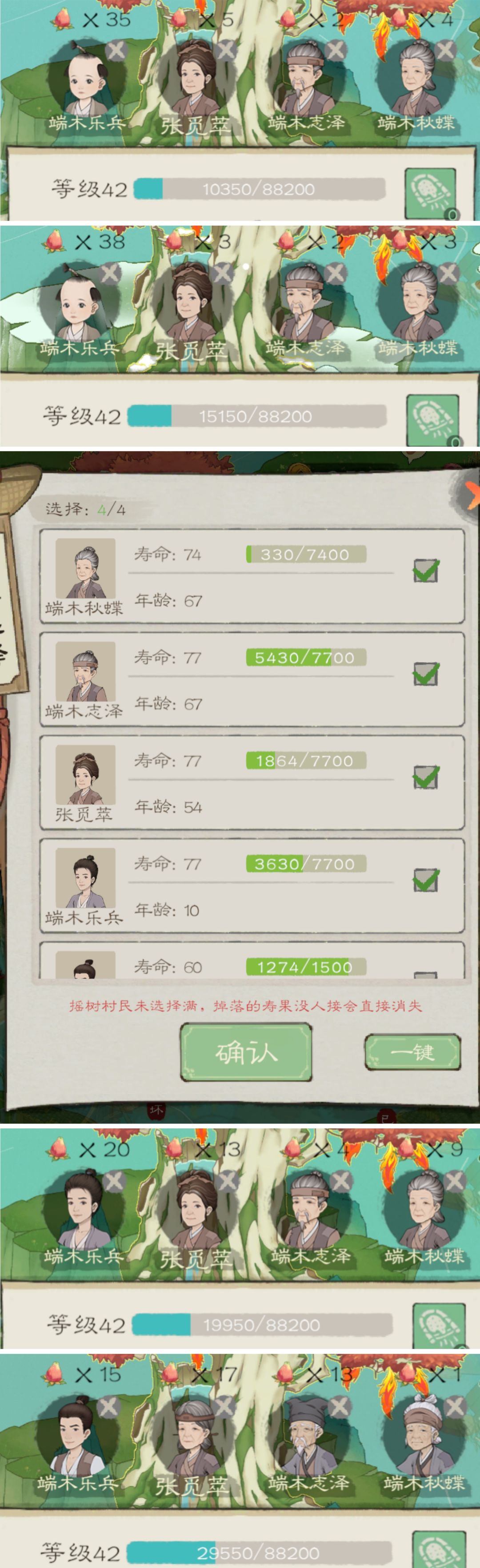 房子换的早,晚膳吃得少,不要心疼原材料。我开始心疼我的晚膳材料了。前三张图的果子掉落倾向:1.寿命低 2.年纪轻。