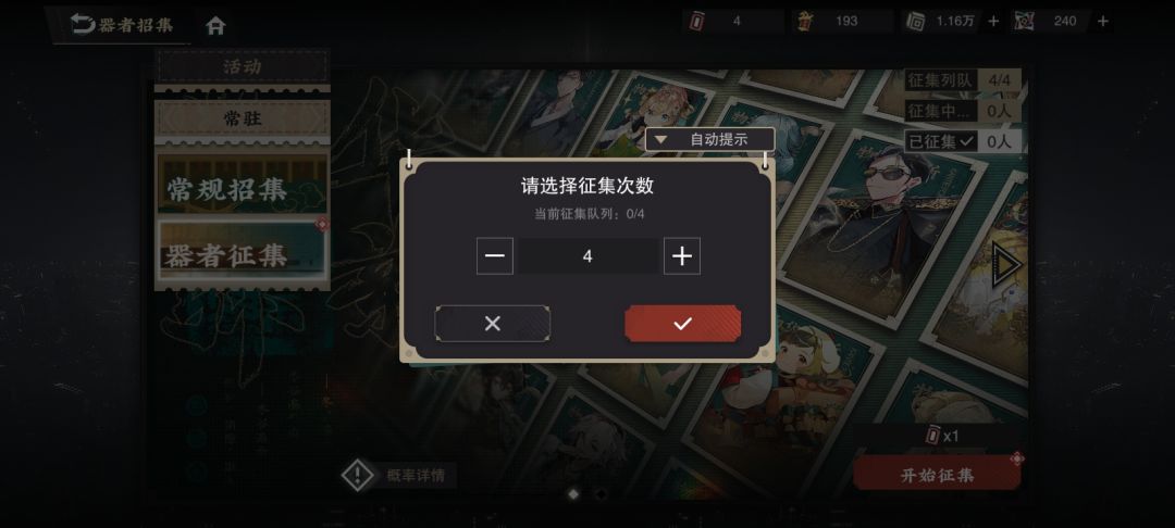 然后打开器者征集,领取一下昨天的征集结果,再开始今天的征集。