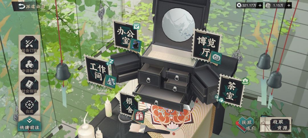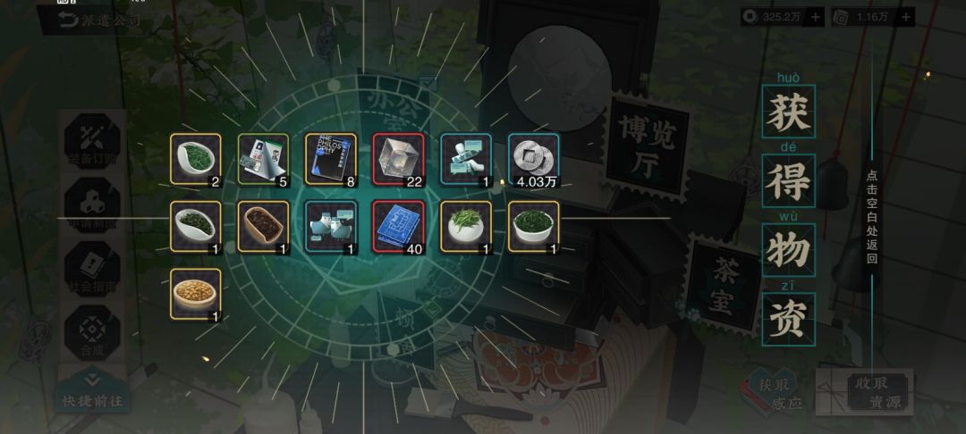然后打开派遣公司,点击右下角的收获资源和获取感应。