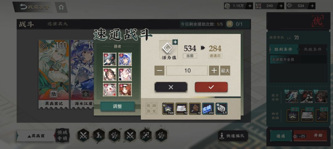 然后先去活动关卡,去刷一些材料,刷十遍。