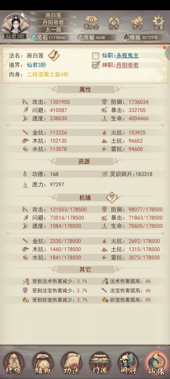 万氪以上神二帝君属性参考