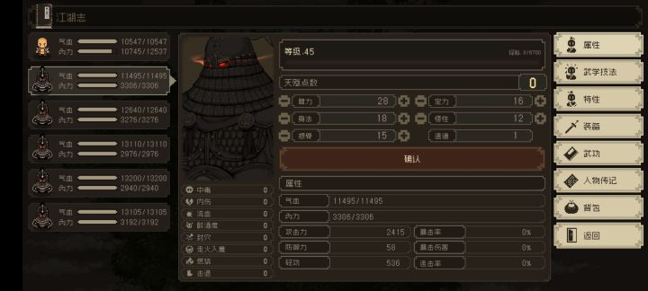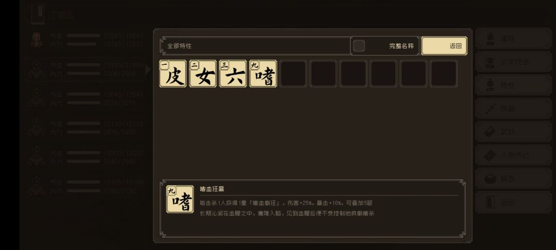 但是自带特性六脉逆行(无视debuff),嗜血狂暴(杀一人25%增伤,10%暴击,最高五层)