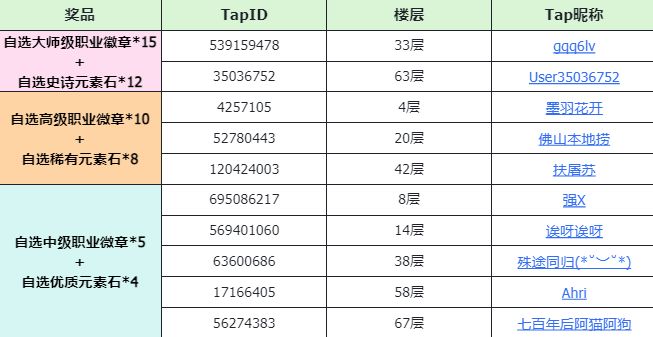 记得带着游戏ID、中奖截图以及Tap主页信息进行核实领奖哦!!