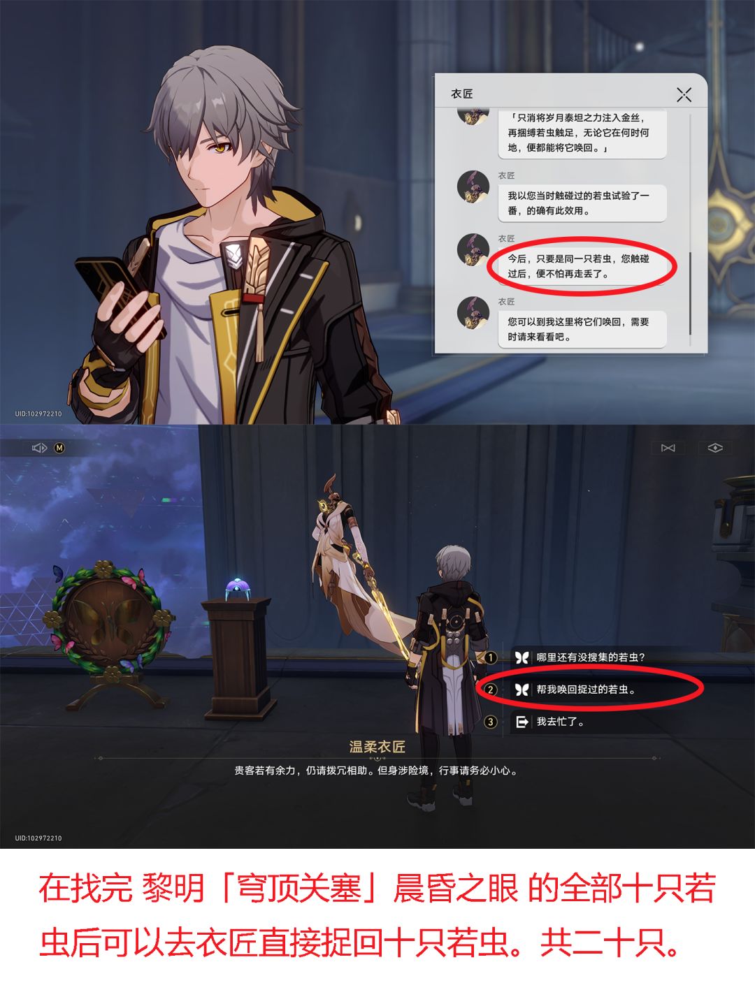 注意!总共二十只若虫,这里只带找了十只,因为另外十只和穹顶关塞的十只若虫完全一样,找完穹顶关塞的十只若虫后可以直接去衣匠处对话找回十只!总共二十只!没有找完穹顶关塞的若虫可以查看上一条图文,或者在主页搜索,谢谢。