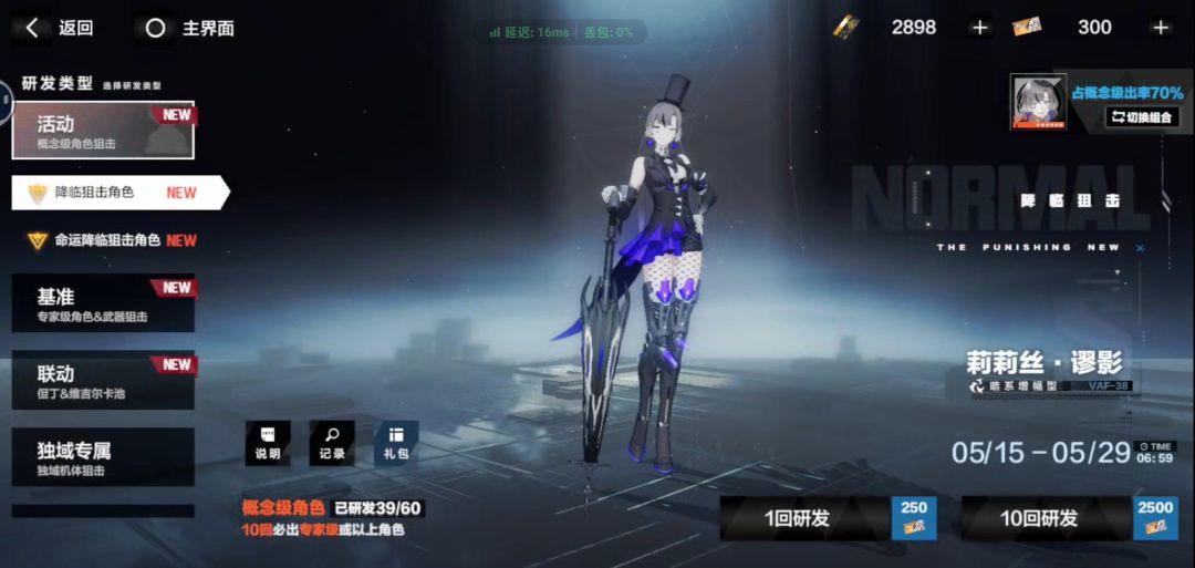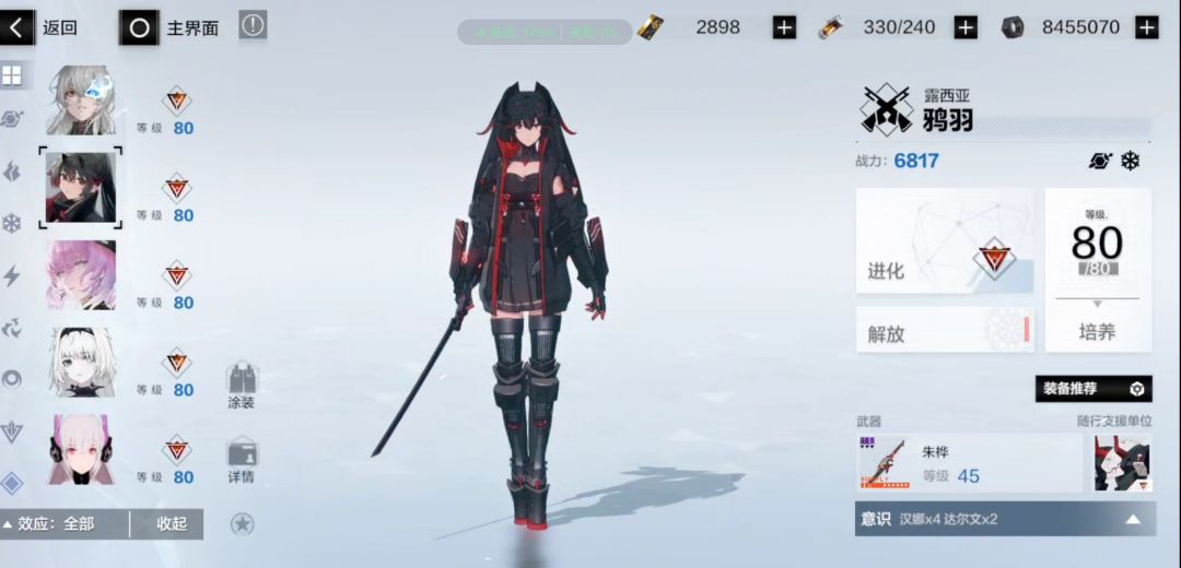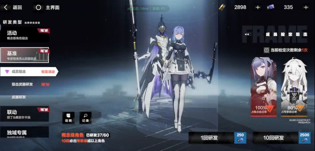 同上面,先抽最新的主c,并配专武,辅助机