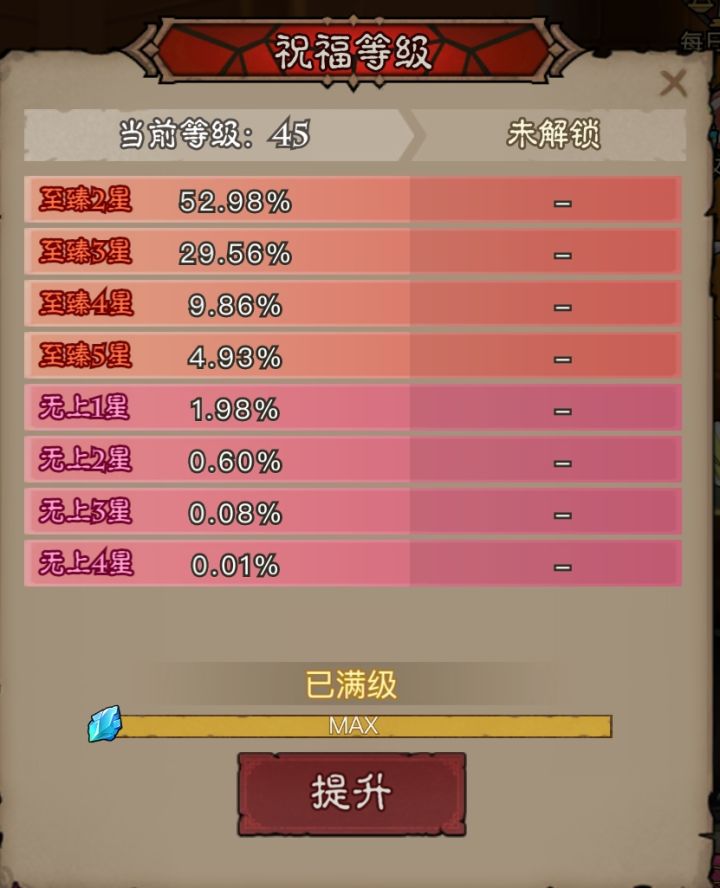 挖矿和祝福等级:新区刚开首推挖5535,也就是主挖加速劵,按照这样挖上午开的区,晚上就能祝福9,在祝福10升11,11升12的时候就可以挖点结晶了,不然容易结晶不够升等级,12以后就该5355主挖结晶,我自己的话现在是手挖,结晶2级我就直接挖了,其他的有4级矿我也挖了,手动实在懒得一直刷了,这张我从微信找的祝福等级所需结晶数可以对照,还有矿的话俩小时会自动刷新,所以有时间的每俩小时上去清一轮