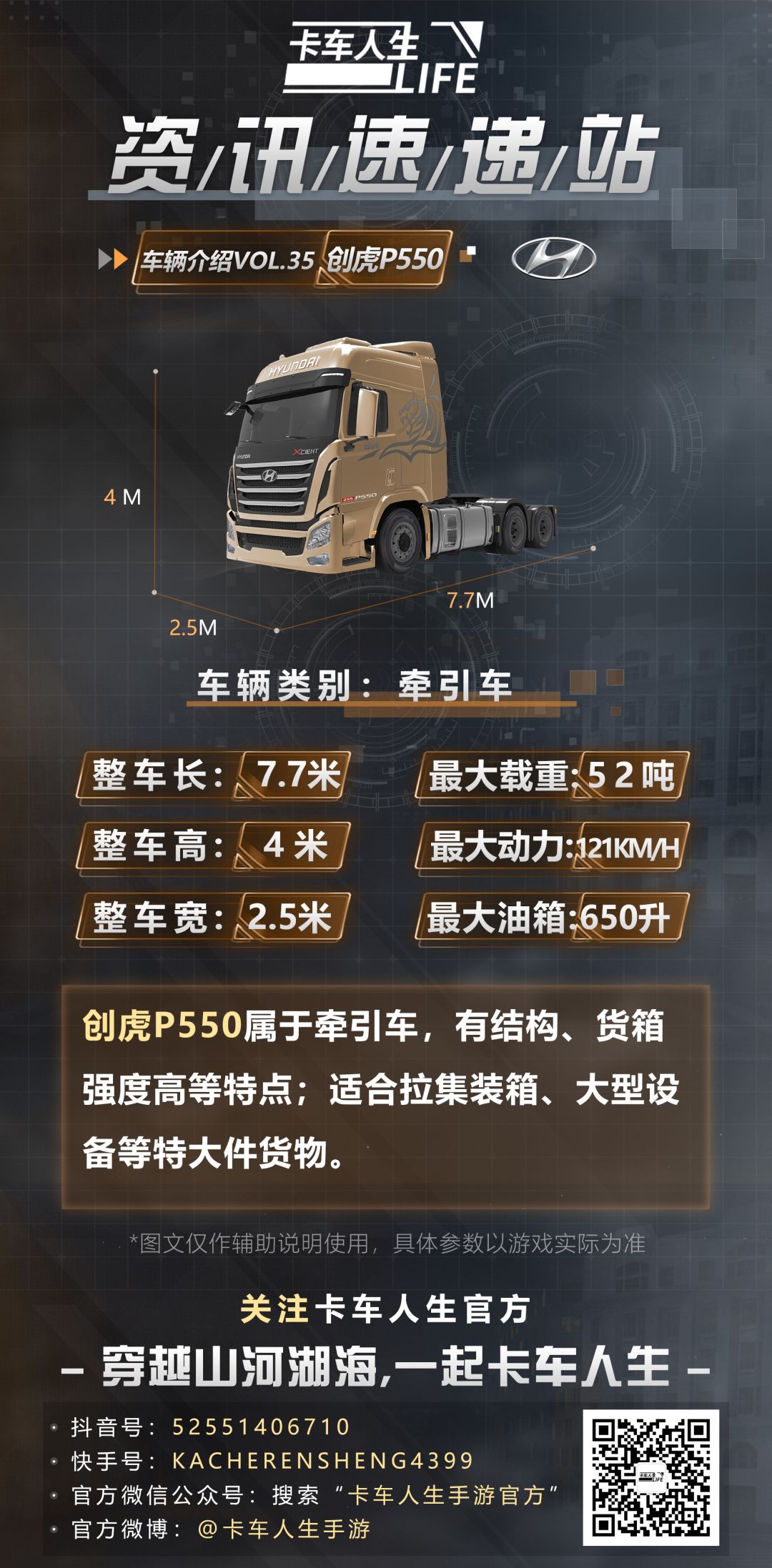 以现代重卡为原型的「创虎 P550」授权旗舰车型即将随着5月26日新版本一同登场,P550不仅是经典创虎的升级,更是一次车型的淬炼与性能跃迁。