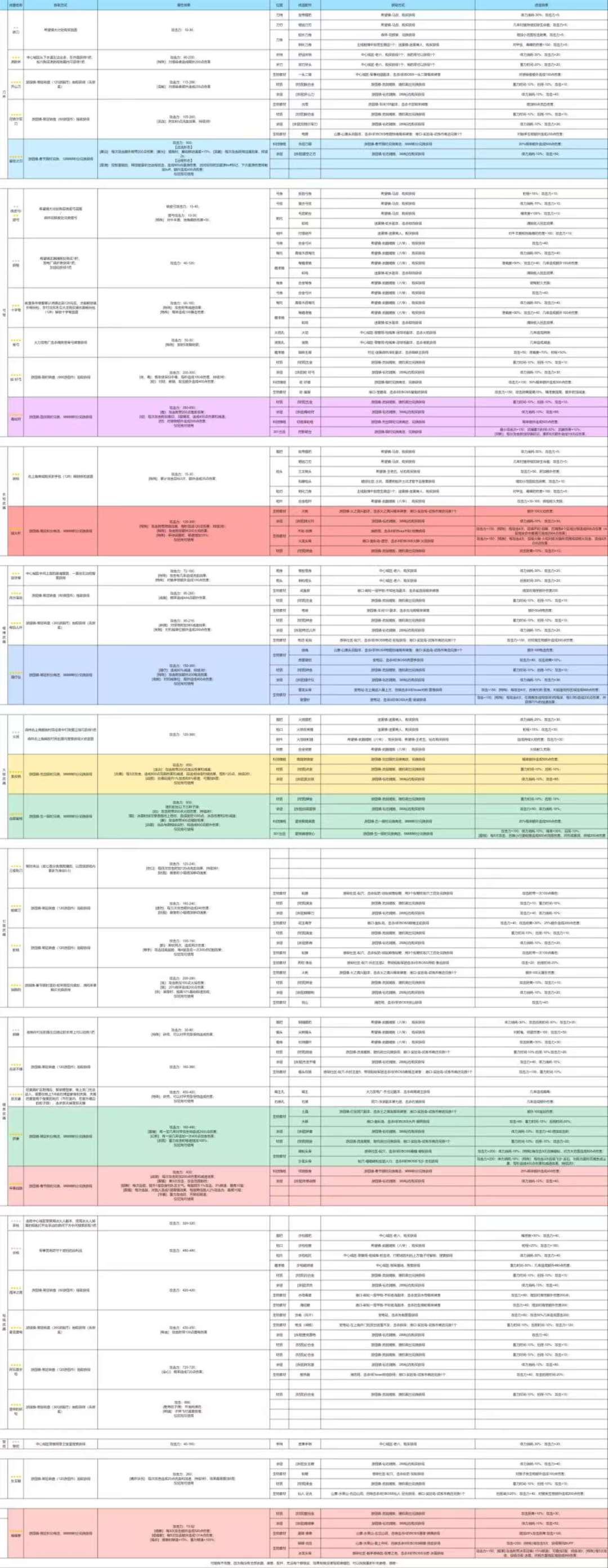 全武器套装以及配件属性获取途径一览