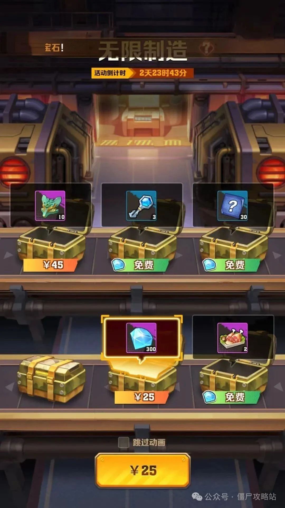 25r:钻石*300,后免费中体力包*2、技能手册*30、普通钥匙*3