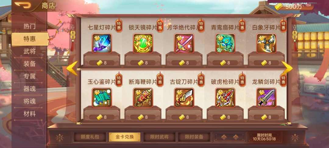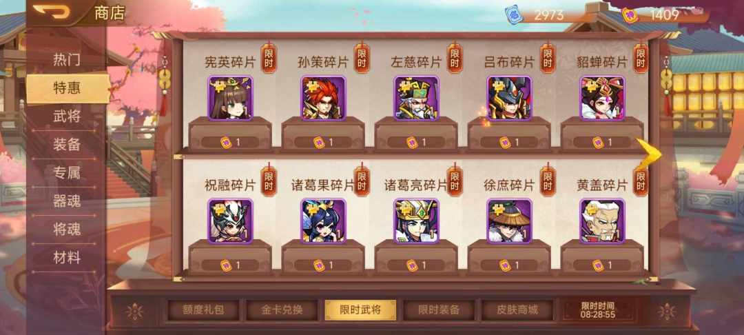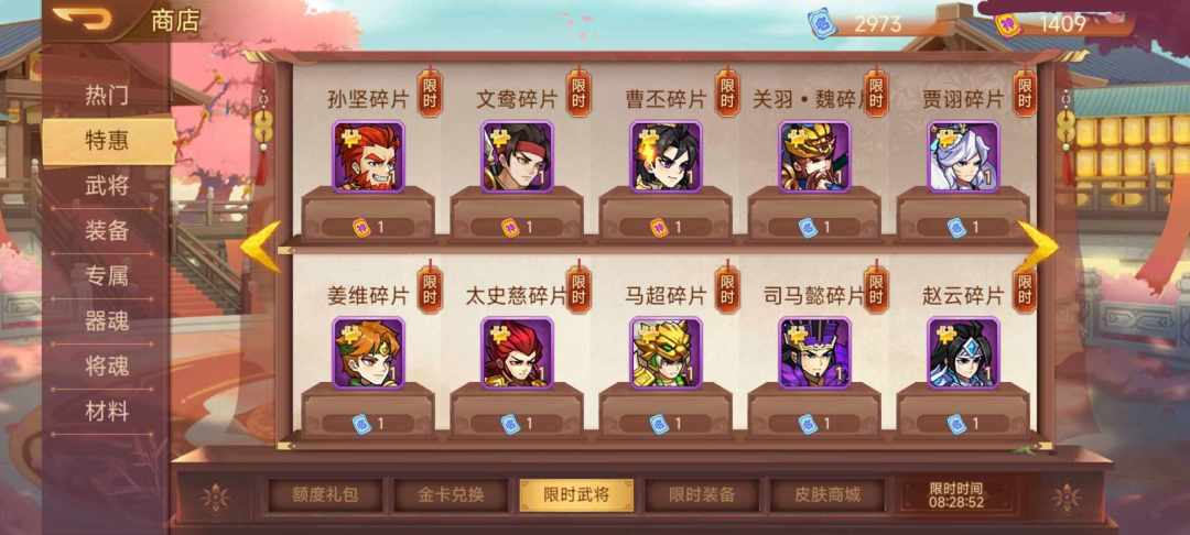 1、商场增加部分神将资源:新增黄盖/孙坚/文鸯/曹丕的碎片/专属/将魂购买。