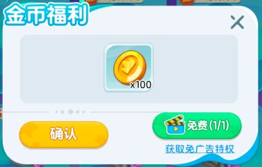 在游戏的商城内,新增了金币福利,播放广告便可免费领取100金币,每天仅1次机会