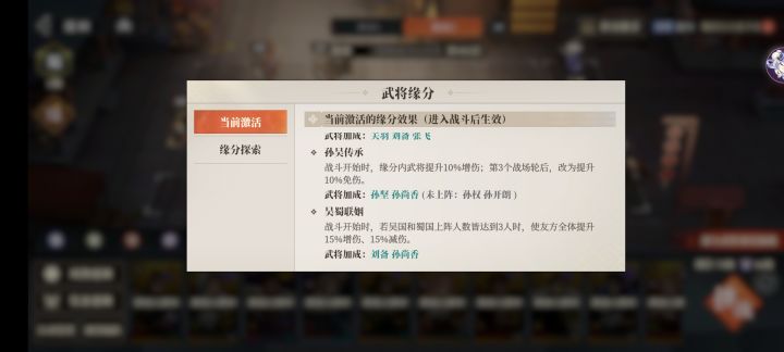 然后我们火烧有刘备,一队直接步练师换刘备,二队刘备带着关羽张飞(关羽不需要任何练度,清buff送条工具人),孙尚香有联姻羁绊。再随便带两个乌龟边角料就齐活了