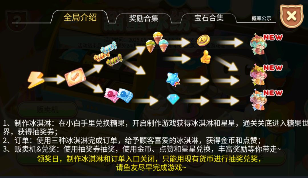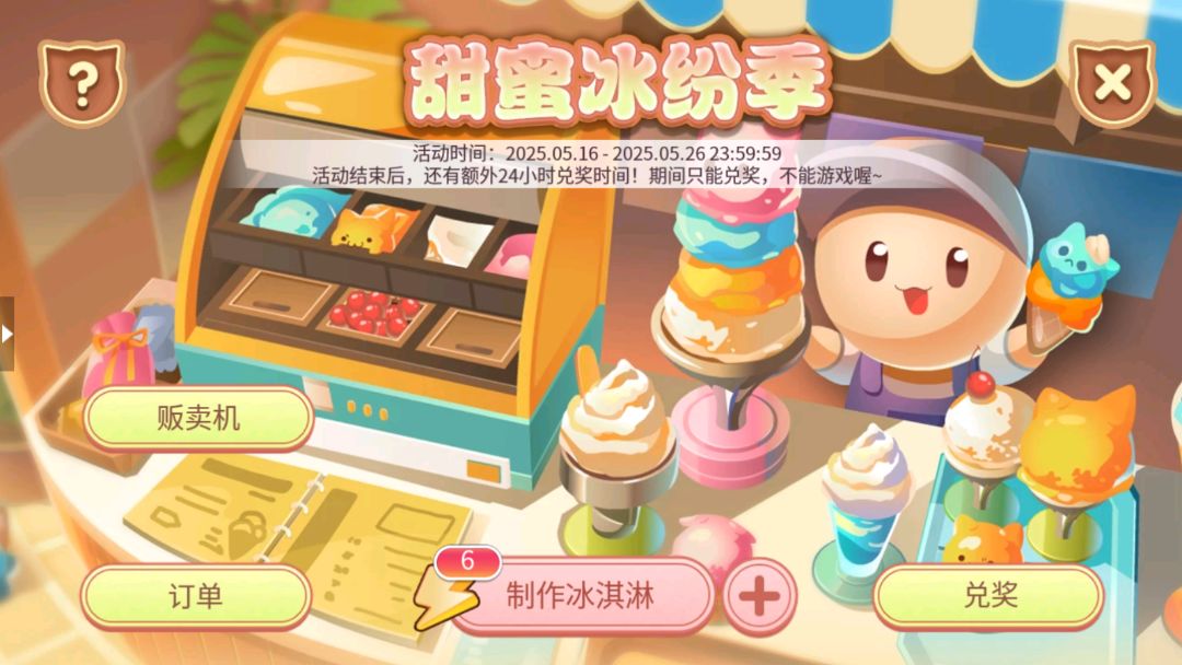 完成制作冰淇淋的任务后,进入贩卖机消耗收集到的抽奖券、进入订单使用冰淇淋。