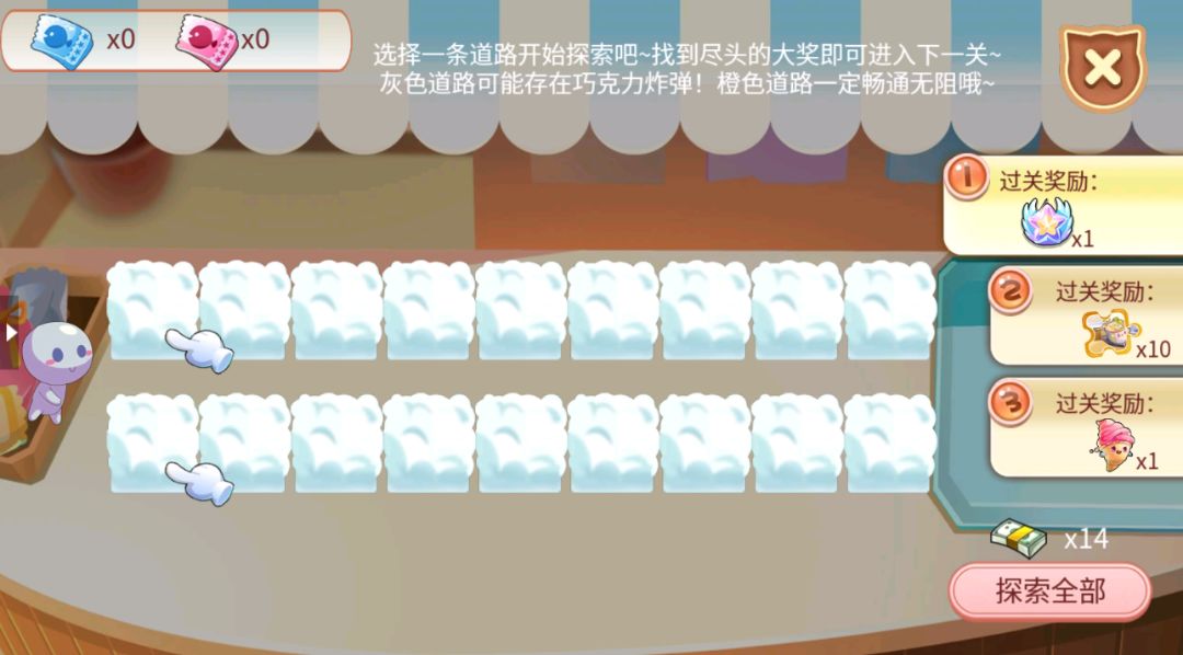 完成制冰机,达到关底后,探索道路收集【抽奖券】~