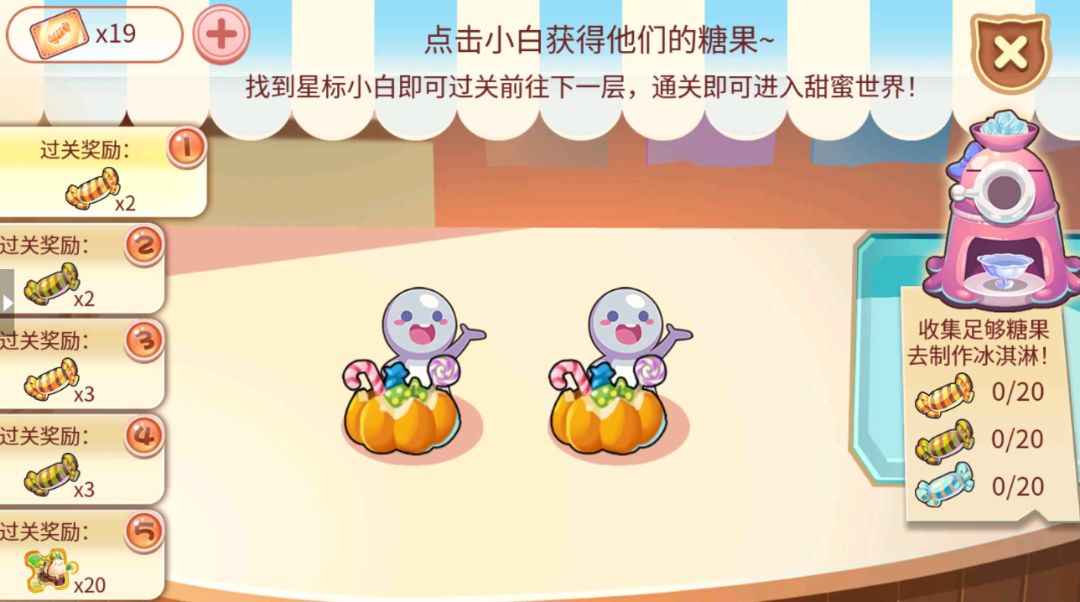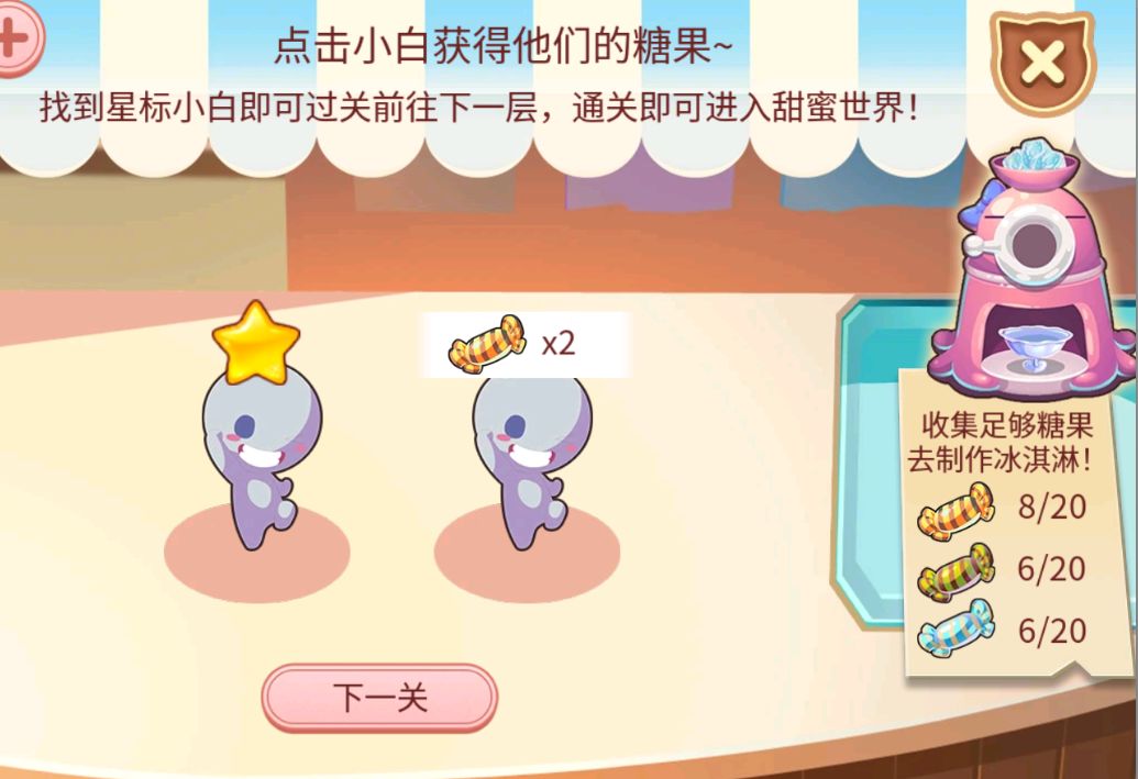 在找到星标小白之后即可通往下一关,收集足够多糖果后可进入右侧制冰机环节!
