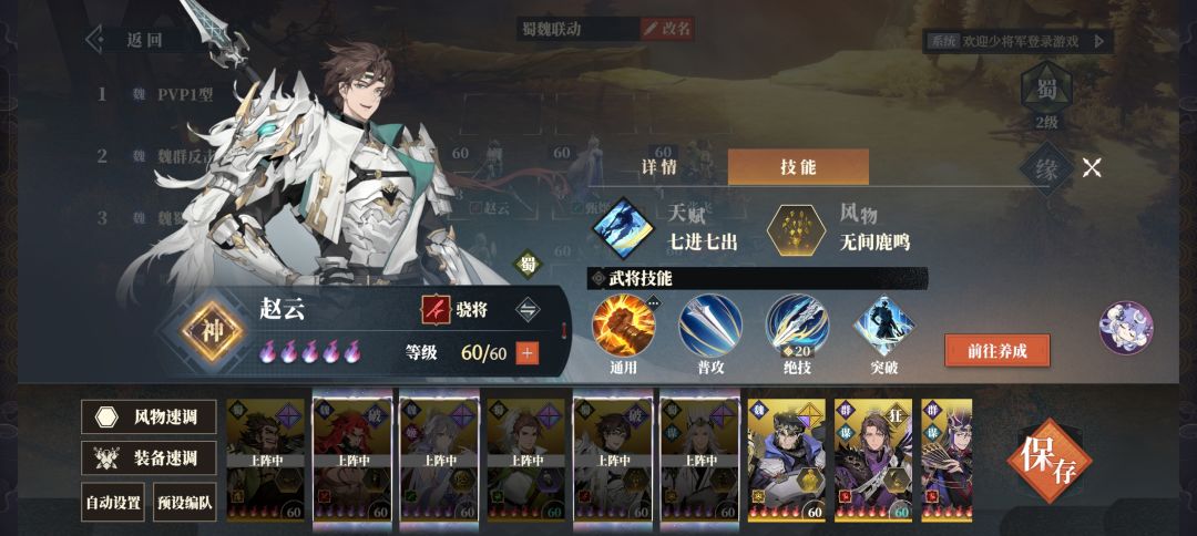接下来进入正题,这次是蜀魏联动队(核心依然是甄姬+典韦),之前发的配队里都已经有赵云和刘备了而诸葛亮也能打反击我就索性以蜀国为主搞了这么个配队。这个配队很特别,能打输出的足足有4个!赵云主c堆最高攻击,典韦副c堆第二高攻击,诸葛亮功能c堆第三高攻击,张飞逆境c有什么用什么。接下来我给说说详细定位