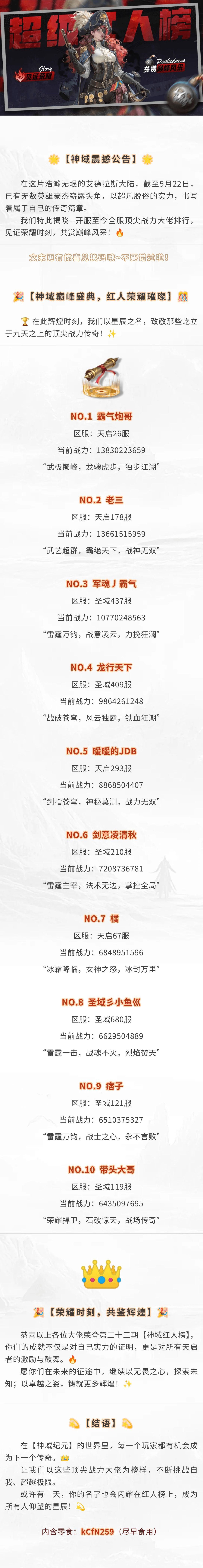 【神域纪元】红人榜丨第二十三期震撼来袭!