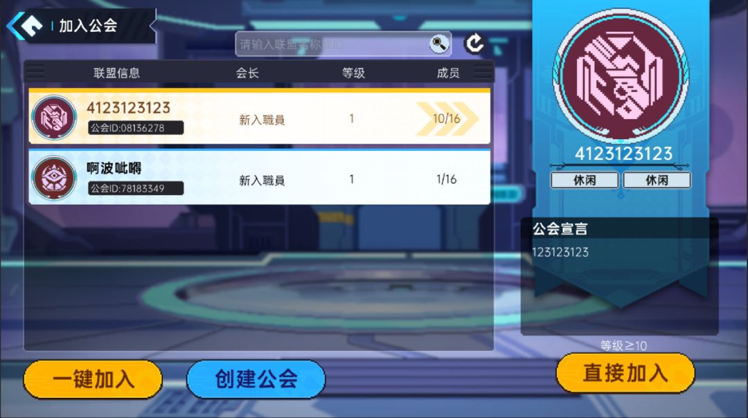 要进入公会,请从列表中选择您想要进入的公会,然后点击右下角的“加入”。 加入公会时,建议根据公会等级和成员人数进行选择。