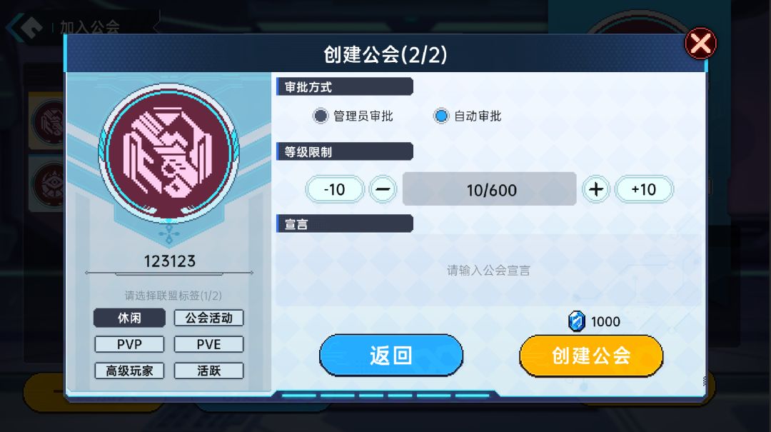 要建立公会,您需要 1,000 颗宝石。 如果您建立自己的公会,您将成为公会会长,您可以自由更改公会设置。 不过,当领导的好处并不多,所以如果你买不起石头,建议加入。