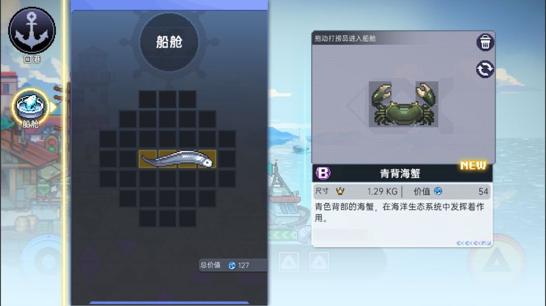 玩家捕获后,需要拖动打捞品进入船舱,可以提前进行旋转,合理的拜访才能利益最大化!
