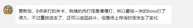 这一次的亮相,让我们发现了很多的不足,还有几个让人头疼到快炸裂的BUG,卡圣物的时候,卡探索的时候,大家给多多的反馈都如此的耐心和充满鼓励!即便当前版本的战斗节奏较慢,高层关卡的难度比较高,大家仍然用极高的热情去挑战和体验,给我们提出中肯的意见和建议,在此,多多和代码猿唯有更投入的完成版本优化迭代,完成战斗调优,完成福利活动,尽快的开启第二次测试,只有这样才能回馈宝子们的包容与鼓励!