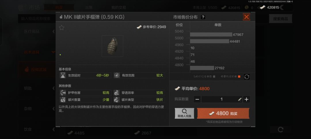 市场购买:直接氪金,土豪首选(MK II手雷均价快5k柯恩币了呜呜)。