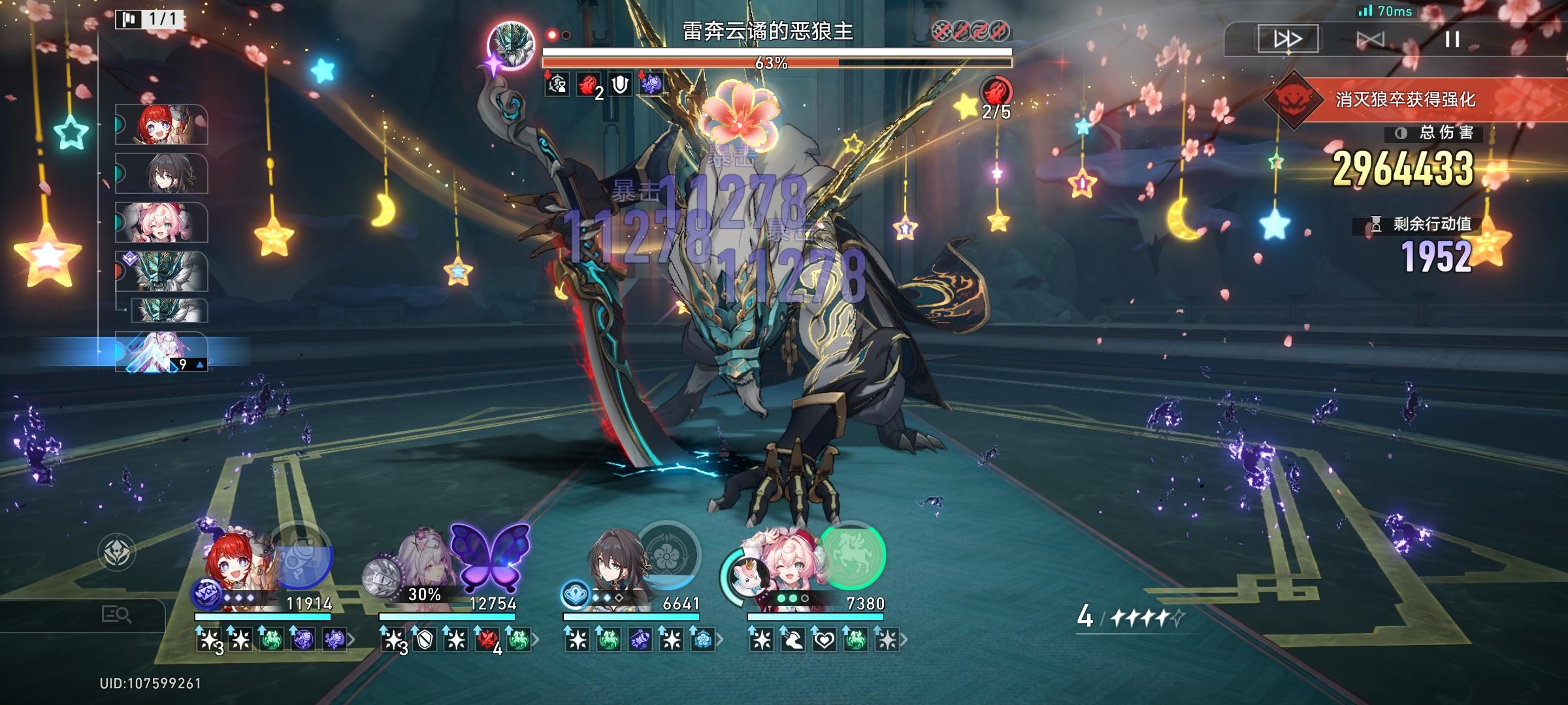 重打了下末日,遐蝶在未击破的情况下对三打了三百万伤害,2.0的时候看到黄泉一百万伤害觉得强上天了,现在看来也是砍不动了