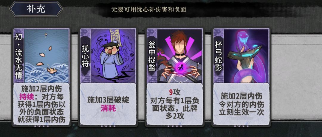流水无情的判定非常特殊,一层其他的负面就能获得一层内伤,高层数内伤不触发流水的效果