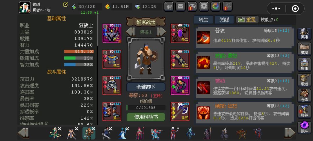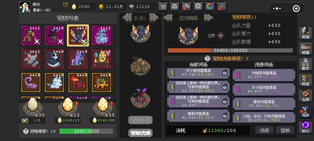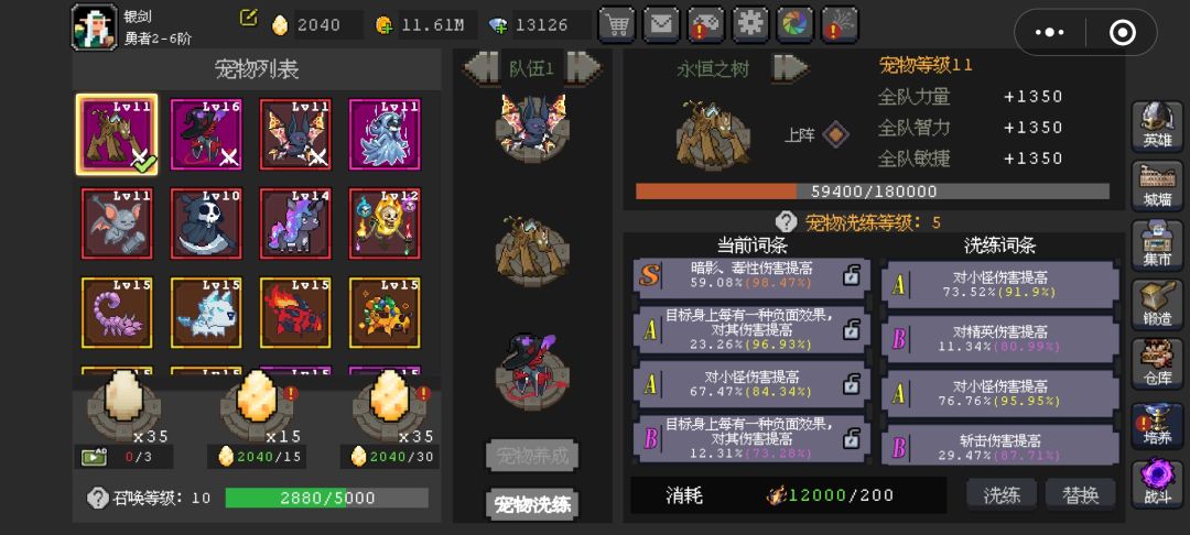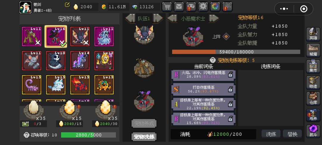 7.辅助都用百发后,我维京站街准确率142%,进关卡能到210%,再配合宠物小恶魔的技能,在4000关以内是不用怕怪物的闪避词条的。