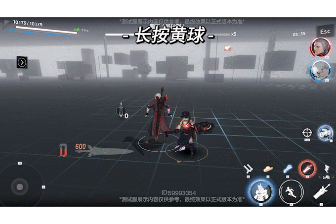 切人入场,长按黄球,长按大招结束。