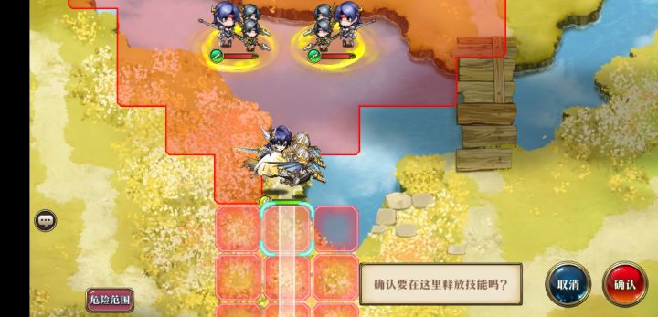 1.往上走到危险范围边上向下放2c,让2c转换技能