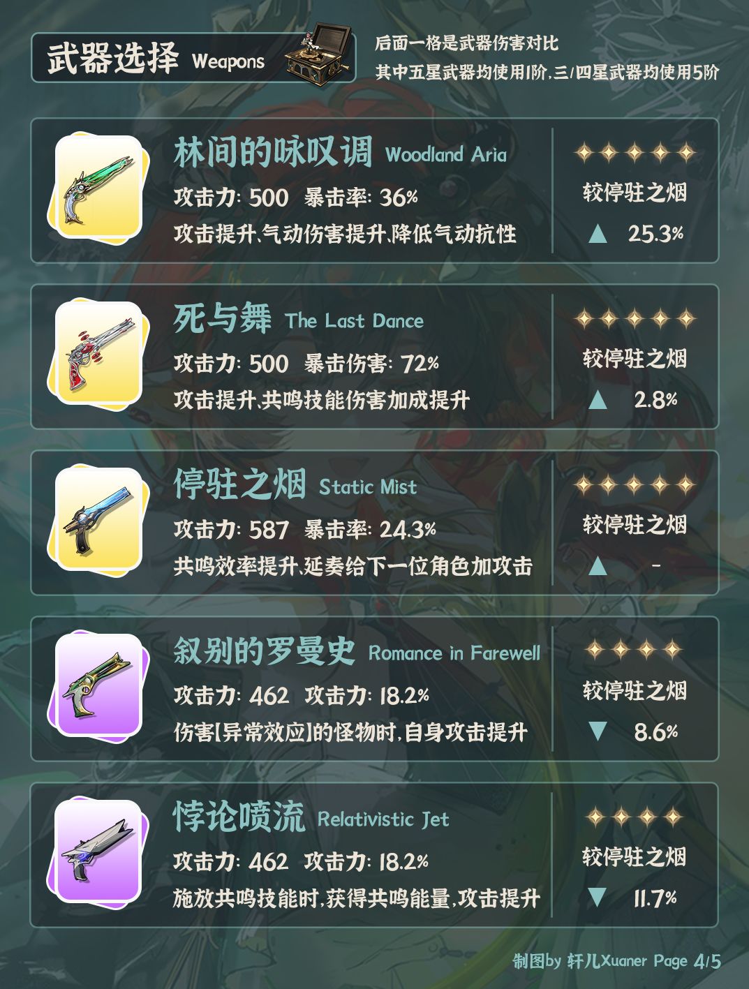 ⑤ 夏空使用佩枪,首选专武林间的咏叹调。四星武器推荐叙别的罗曼史、悖论喷流等。