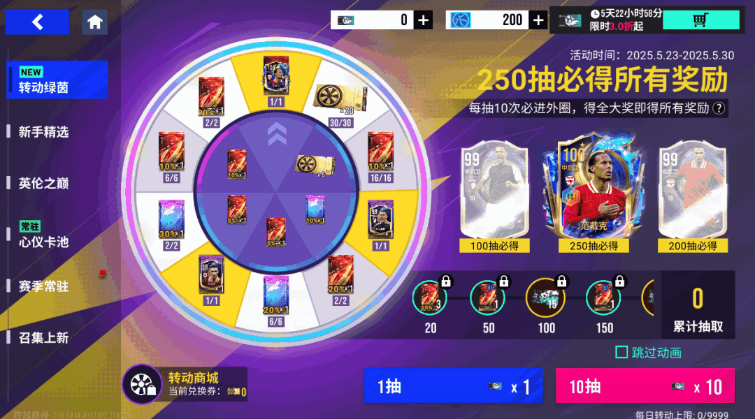 【转动绿茵】新一期转动绿茵将于5月23日11时-5月30日11时开启,100联赛蓝巅峰范戴克隆重登场!