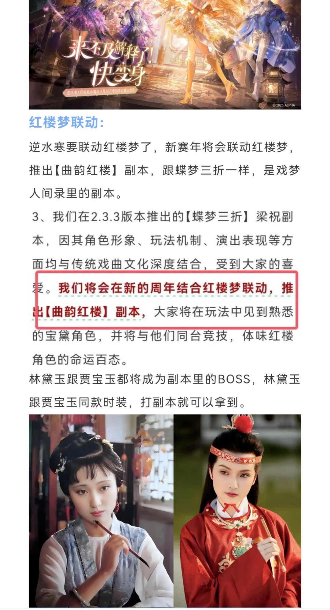 逆水寒红楼梦联动,巴啦啦小魔仙4套联动时装,3.0赛年新增重置规则,小组赛积分计算规则调整!