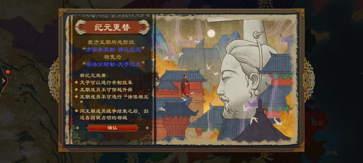 禅让纪元变迀到天子纪元的条件是:王朝中主导国城数大于王朝总和(这里有个注意的事情禅让纪元可以变迀到天子 霸主 诸王 三个纪元的任意一种要变天子纪元一定不要满足另外两个纪元的变迀条件)