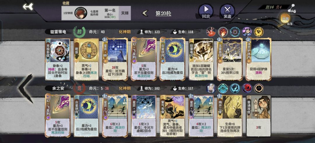 这个赛季由于有机遇“同境界常规牌可以互换等级”星轨,杯弓这些元婴牌都可以用来升级轰雷。炎尘元婴一定要多赢这样才有容错在化神慢慢找乾卦五雷。如果碰到金丹大D,元婴大D角色,最好还是用毒憋来打,毒憋现在符可以打4动带万邪元婴就能启动战力不低,怎么选择看对手呢。