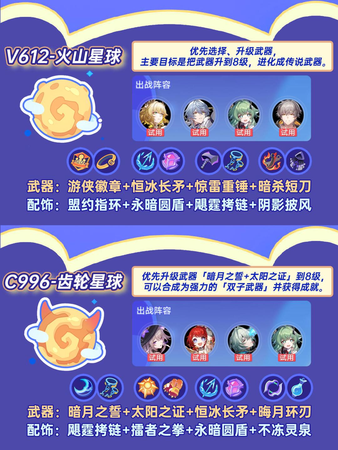 1.优先升级主武器到8级合成「传说武器」