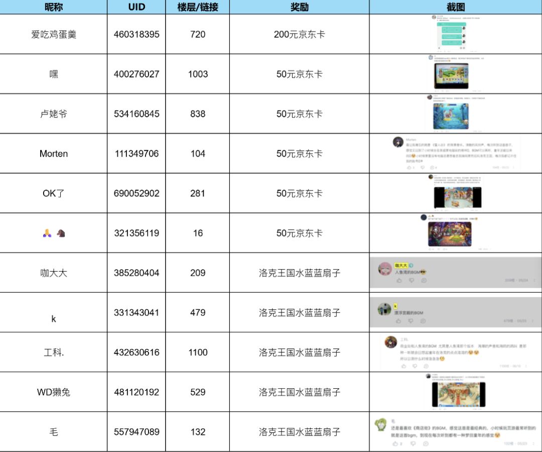 特别说明:此次活动由系统自动开奖,但对于其名单中不符合活动要求及评奖要求的小洛克我们进行了筛选和替换,符合的小洛克则正常获取奖励,未有影响哦。最终活动获奖名单如下:
