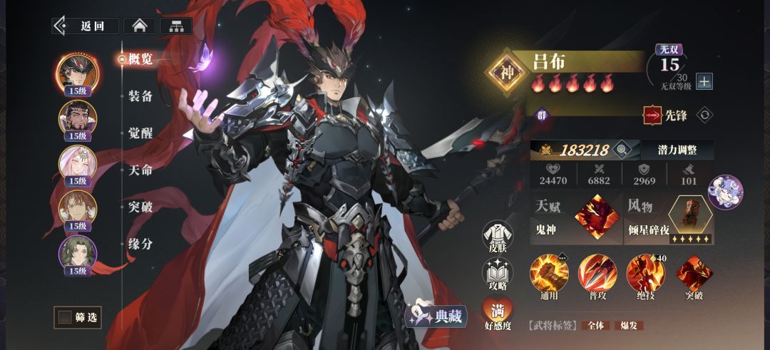 吕布这玩意儿的强度是有上限的,到后期敌我双方基本全满配,吕布伤害就会不够,根本砍不动火烧,只能前中期爽一波,想玩吕布的想清楚。