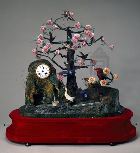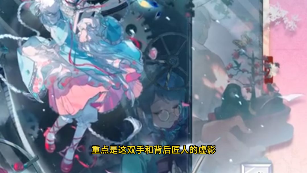 立绘整个轮廓和鸟音山水钟文物本体的钟部分很相似,这个不停转动的齿轮也是在仿钟表的内部结构。整个立绘上点缀的花朵和小鸟也都是文物本体上有的。之前看过我视频的朋友应该知道,我个人是非常偏爱这种立绘和文物结合的比较巧妙的设计的。