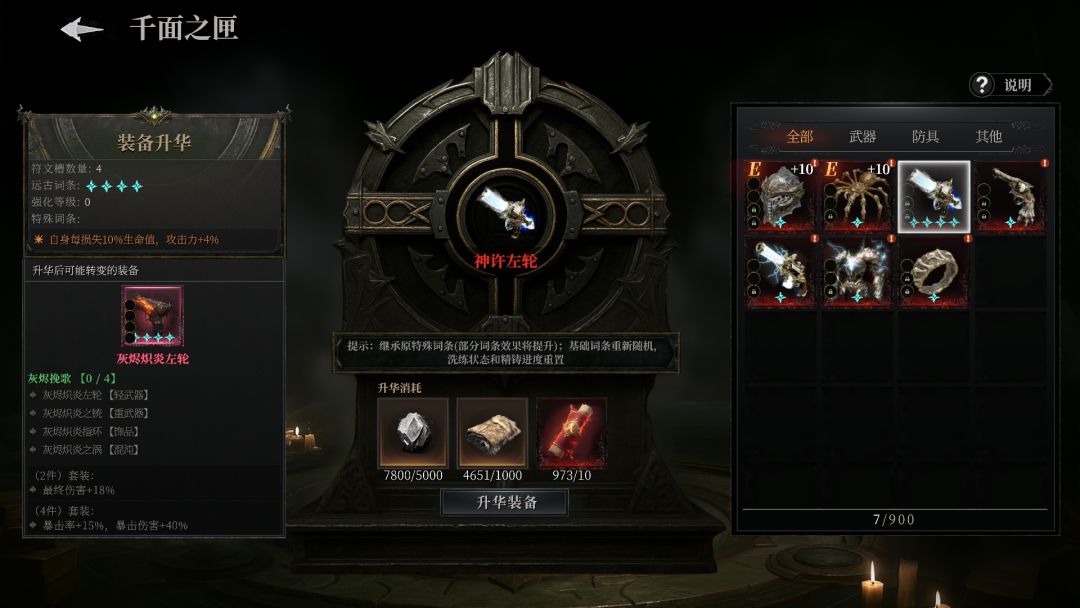 继承者们可自行构建4条远古词条,并可保留神话装备专有词条,将其升华为不朽套装。