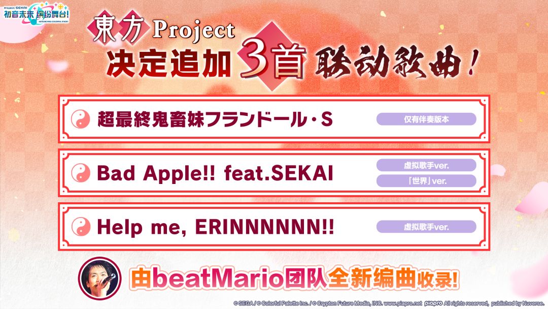 ⛩《初音未来:缤纷舞台》×《东方Project》决定追加3首联动歌曲