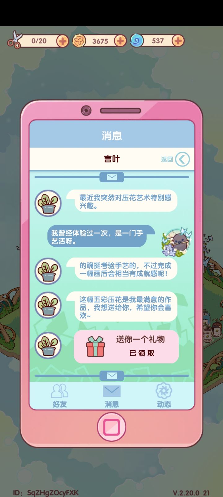 言叶好感度八级送的礼物是压花艺术画,很漂亮!
